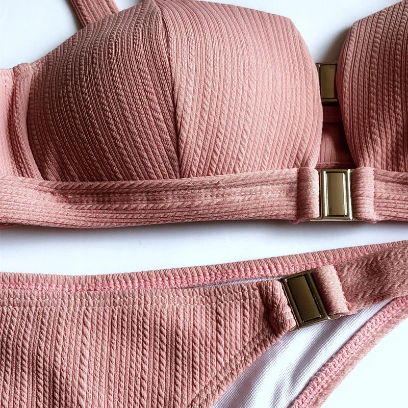Promo New Push Up Bikini Brazilian Buckle Swimsuit Female Ribbed Swimwear Women Two-pieces Bikini set wit